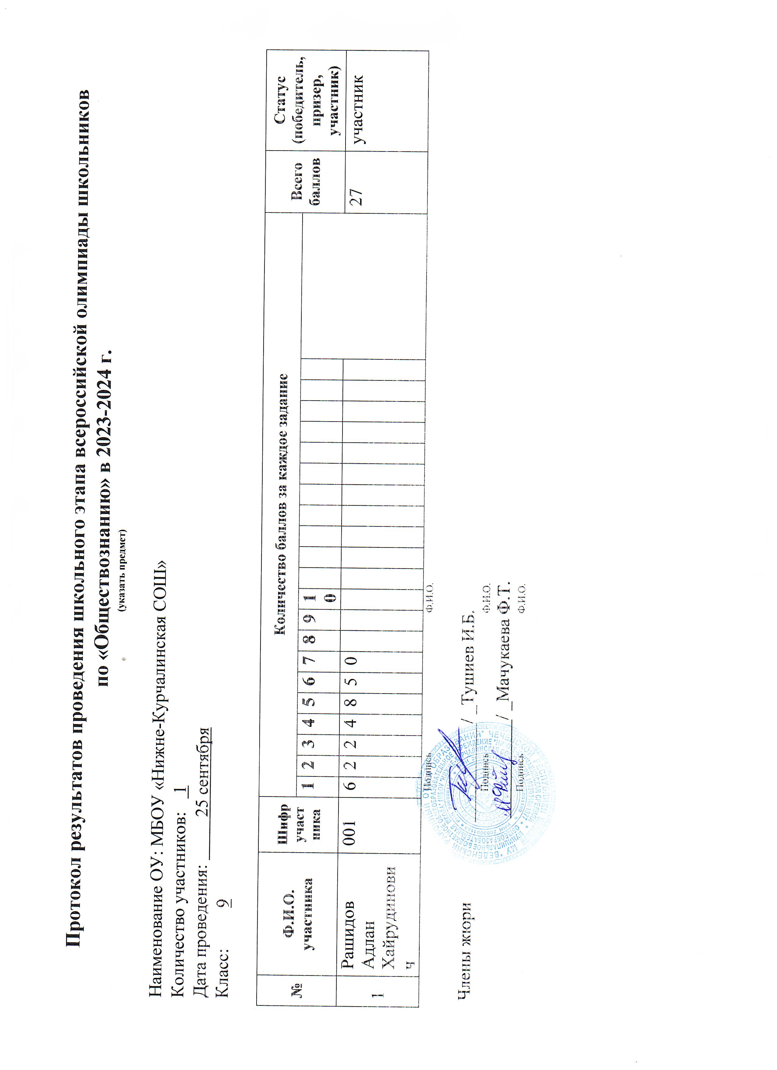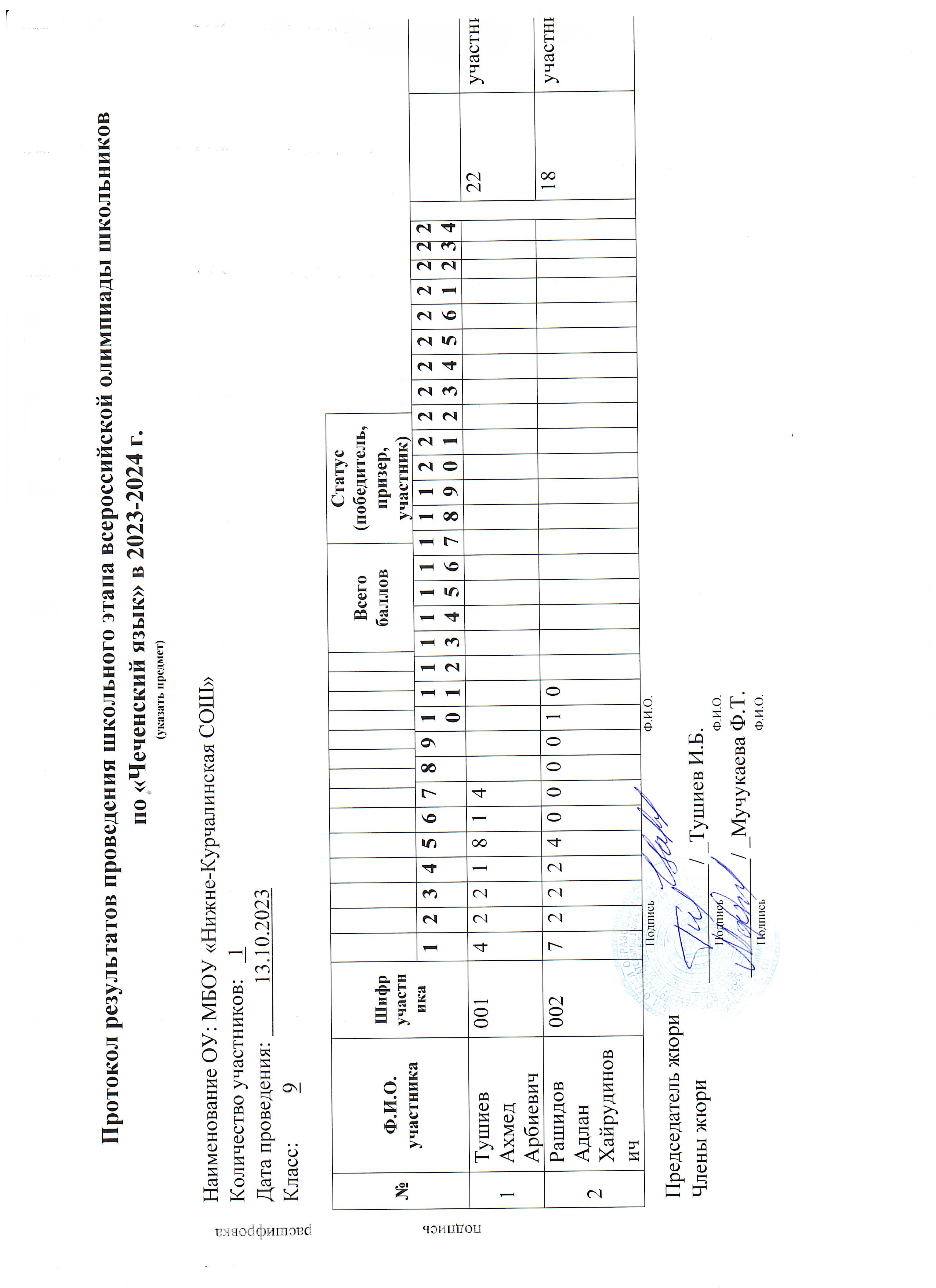 Протокол ВСОШ по чеченскому языку 7 кл 2024год