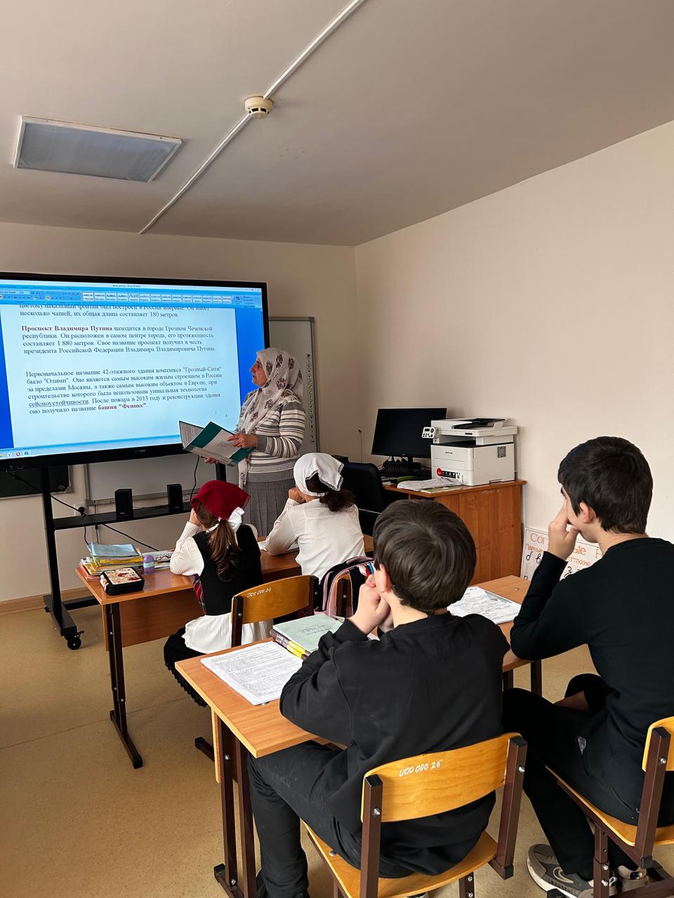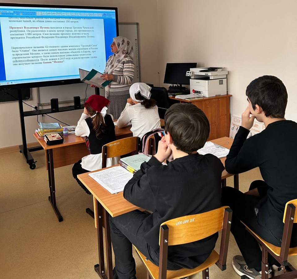 ГОД ГОРОДА ГРОЗНОГО И РАЙОНА ИМЕНИ ВЛАДИМИРА ВЛАДИМИРОВИЧА ПУТИНА🎉🌟Продолжаем знакомство учеников с историей нашей прекрасной столицы❤. Очередное занятие в рамках исполнения плана мероприятий, приуроченных к Году города Грозного и района имени Владимира Путина, объявленного Главой Чеченской Республики, Героем России Р.А. Кадыровым в 2025 году.📌Тема урока “История города Грозного и роль Путина В.В. в развитии региона”. Классный руководитель увлекательно и доступно доносит информацию до учеников.✍Особый акцент на огромной роли, которую сыграл Президент Российской Федерации Владимир Владимирович Путин в восстановлении и развитии Чеченской Республики, его личное участие и поддержка в трудные для региона времена💯.🌹Выражаем благодарность Элизе Жунитовне за прекрасно проведенный урок, который позволил ученикам расширить свои знания об истории родного города💖 и роли Владимира Путина в его процветании!
