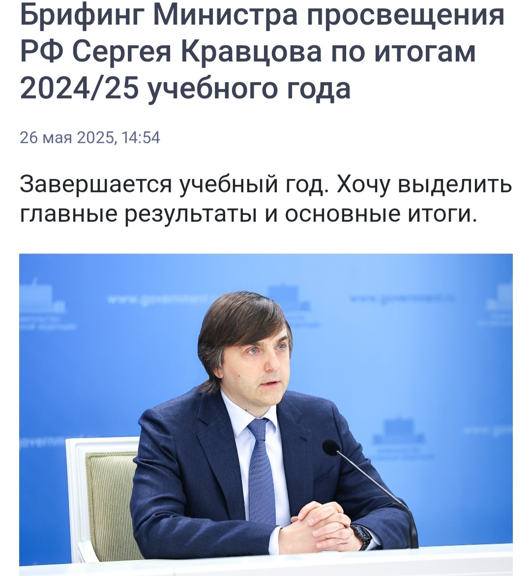 Брифинг Министра просвещения РФ Сергея Кравцова по итогам 2024/25 учебного года